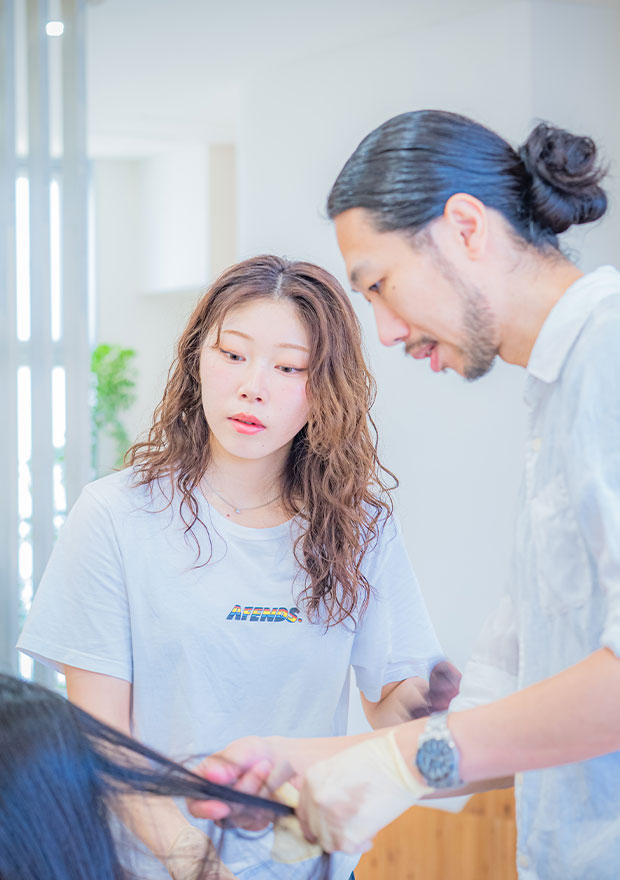 お客様の居心地の良さ、働きやすさの本質は、スタッフひとりひとりが「他人軸」であることです。人を思いやることで、自分もまた、在りたい美容師像で生きて行けます。